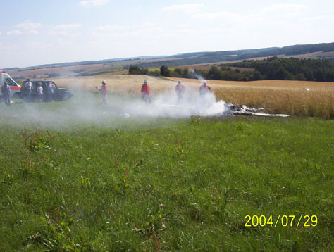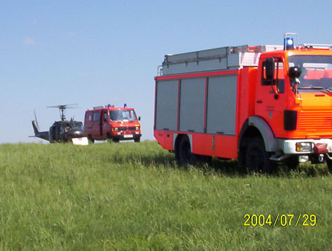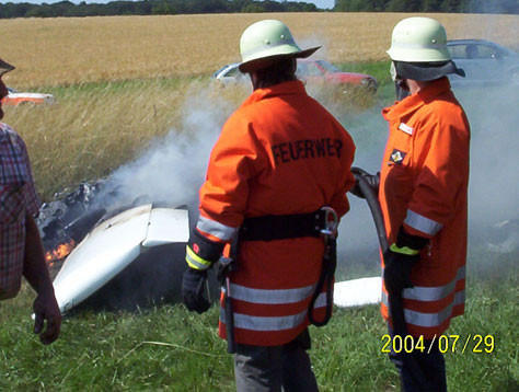 Ein Ultraleichtflugzeug ist in der Startphase abgestürzt und durch den Aufprall auf dem Boden hat es Feuer gefangen. Der Pilot konnte sich selbst aus dem brennenden Fluggerät befreien. Die Feuerwehr löschte das Flugzeug ab und sicherte die Unfallstelle.