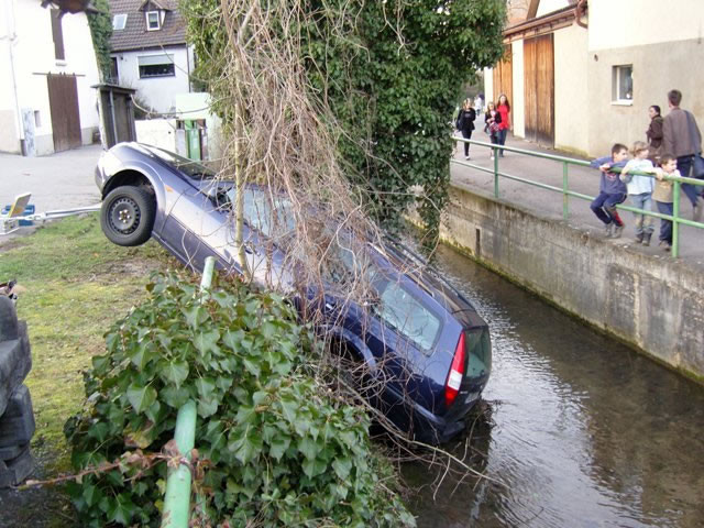 Mit Hilfe eines Krans übernahm der Abschleppdienst die Bergung des Fahrzeuges.