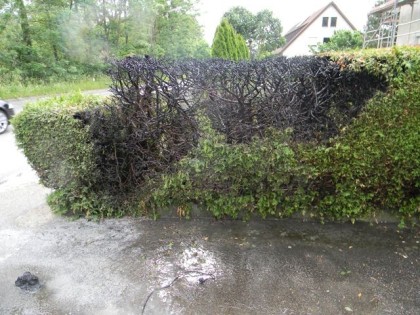 Bis zum Eintreffen der Einsatzkräfte war kein Einsatz mehr erforderlich, nachdem Anwohner bereits die brennende Hecke abgelöscht hatten.