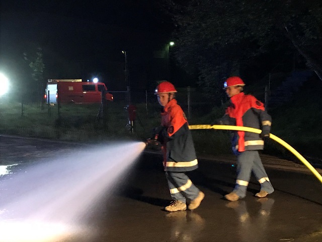 Wieder zurück im Feuerwehrmagazin hatten die Jugendlichen Freizeit. Diese war allerdings um kurz nach 23 Uhr wieder vorbei, denn dann wurde zu einem LKW Brand in der Industriestraße gerufen. Die Jugendlichen mussten diesen Brand löschen, eine Wasserversorgung aufbauen und die Straße absperren. Um ca. 0:15 Uhr waren wir dann wieder im Feuerwehrmagazin. Jetzt hieß es erstmal schlafen und sich für den nächsten Tag ausruhen.