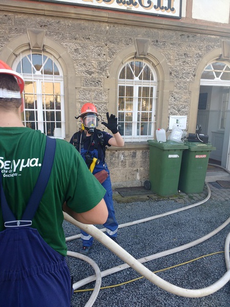 Nach einem anstrengenden Einsatz hatten die Jugendlichen, und auch die Betreuer, sich ihr Mittagessen mehr als verdient. Nach dem Mittagessen ruhten sich einige noch ein bisschen aus oder haben die Sonne auf dem Hof genossen. Nach einer längeren Pause gingen um kurz vor 15 Uhr gleich zwei Alarme ein. Eine Türnotöffnung in Hohebach und ein Wasserrohrbruch in einer Scheune in der Alte Postgasse in Dörzbach. Das LF fuhr nach Hohebach und der GW-T fuhr den Einsatz in Dörzbach an. Dies waren beides Einsätze die in kurzer Zeit erledigt wurden, sodass die Jugendlichen nach einer dreiviertel Stunde schon wieder zurück waren.